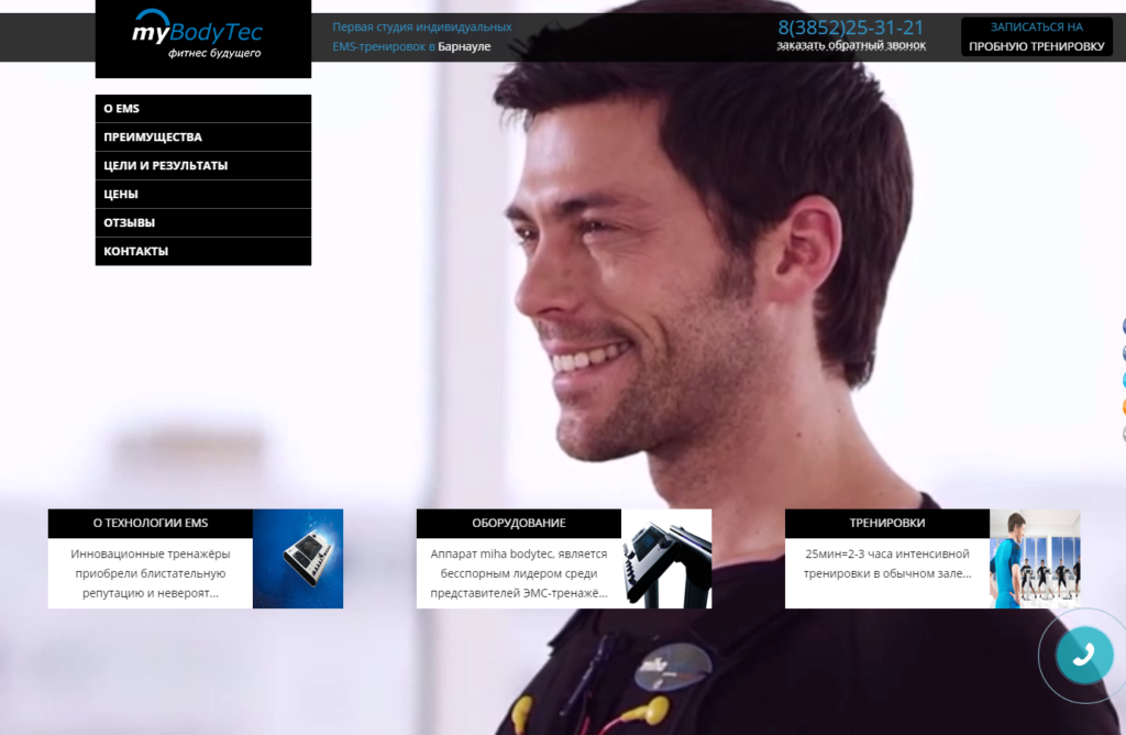 LANDING PAGE «ПЕРВАЯ СТУДИЯ EMS — ТРЕНИРОВОК»