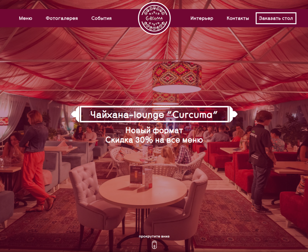 САЙТ-ВИЗИТКА ДЛЯ ЧАЙХАНА-LOUNGE “CURCUMA”