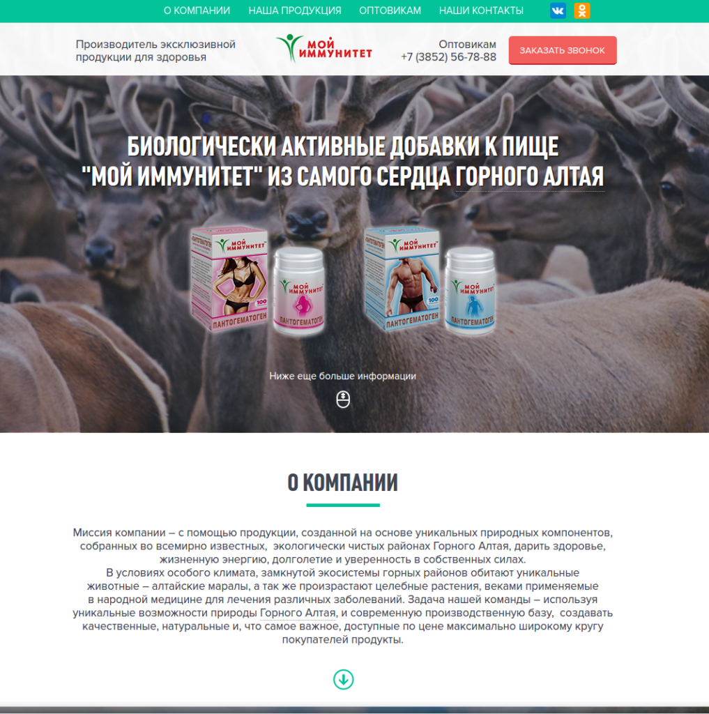 LANDING PAGE ДЛЯ КОМПАНИИ «МОЙ ИММУНИТЕТ»