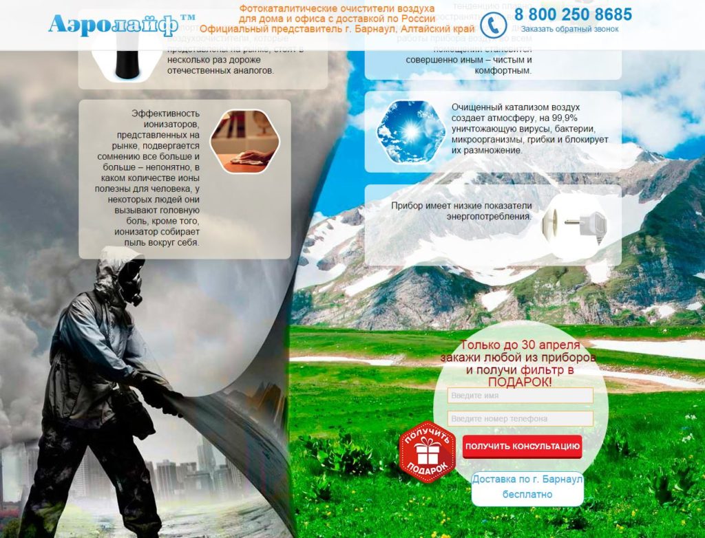 LANDING PAGE ДЛЯ «АЭРОЛАЙФ»