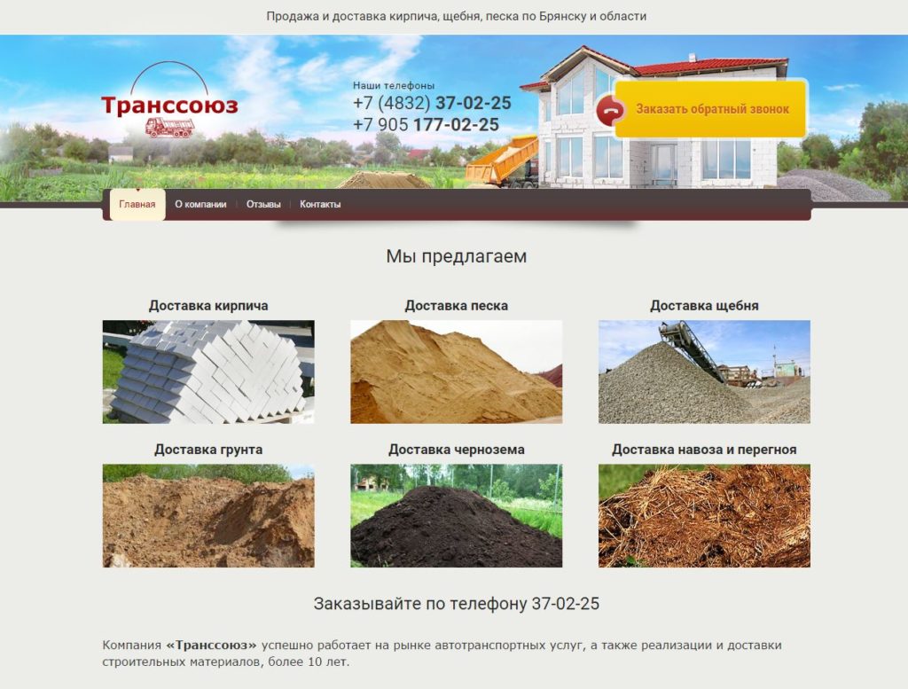 САЙТ-ВИЗИТКА ДЛЯ КОМПАНИИ «ТРАНССОЮЗ»