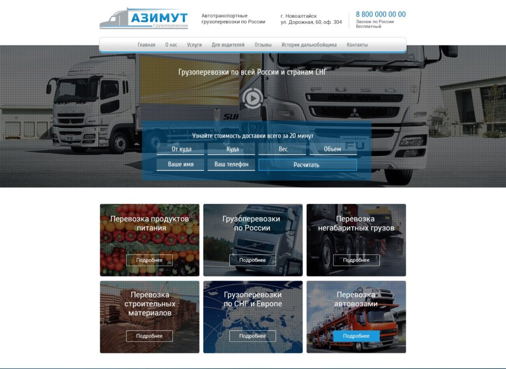 ДИЗАЙН ГЛАВНОЙ СТРАНИЦЫ САЙТА ТРАНСПОРТНОЙ КОМПАНИИ