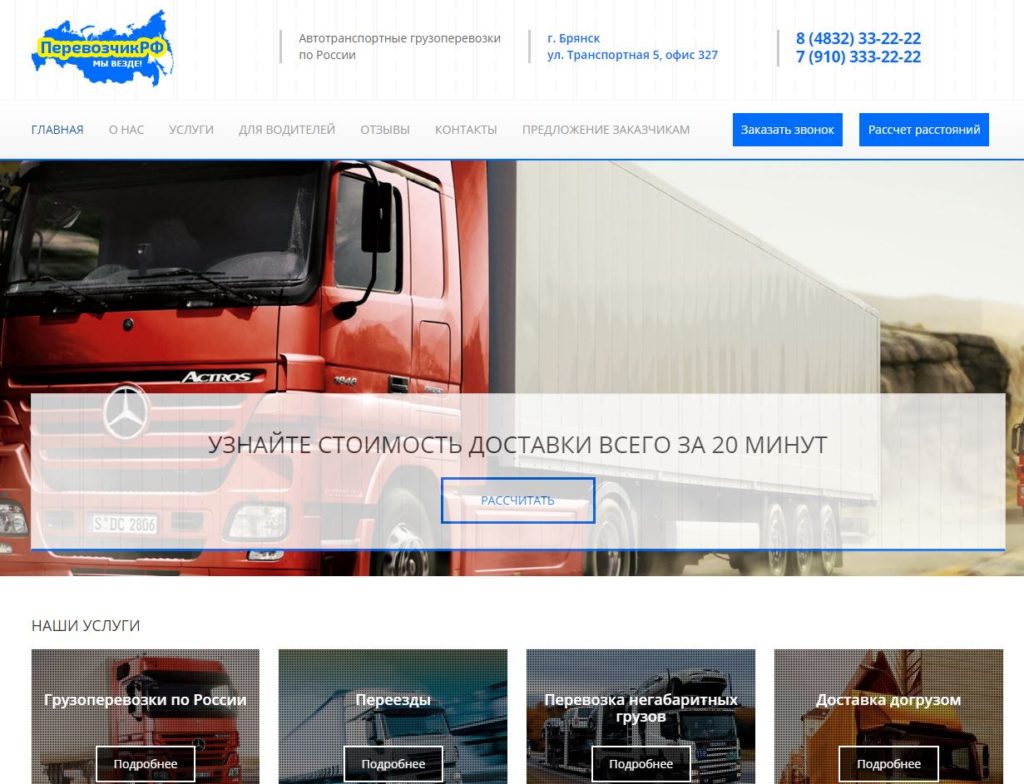 КОРПОРАТИВНЫЙ САЙТ ДЛЯ «ПЕРЕВОЗЧИК РФ»